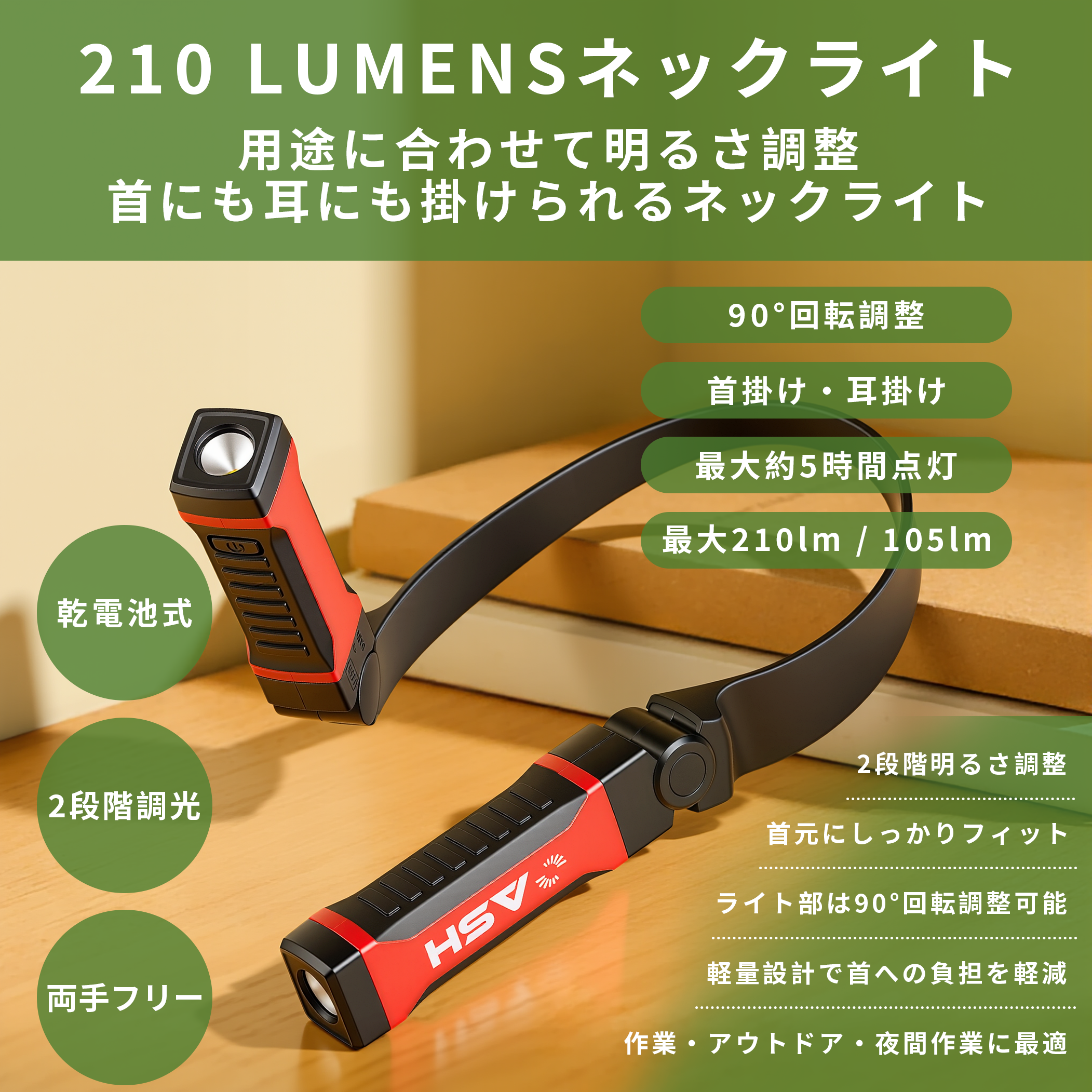 210LUMENS 乾電池式LEDネックライト
